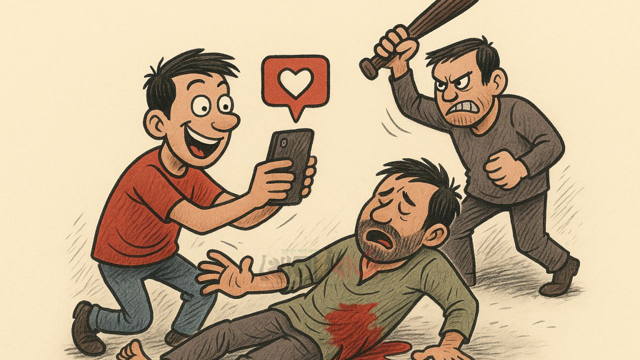 একসময় মানুষ বিপদে পড়লেই আশপাশের লোকজন ছুটে যেত সাহায্য করতে। রক্ত দিতে, হাসপাতালে নিতে, কিংবা অন্তত পুলিশে খবর দিতে এগিয়ে আসত। এখন সেই জায়গা দখল করে নিয়েছে তামাশা দেখার মানসিকতা। আহত মানুষটি যন্ত্রণায় ছটফট করছে, আর আশপাশের মানুষ দাঁড়িয়ে আছে ক্যামেরার সামনে অভিনয় করার মতো করে।