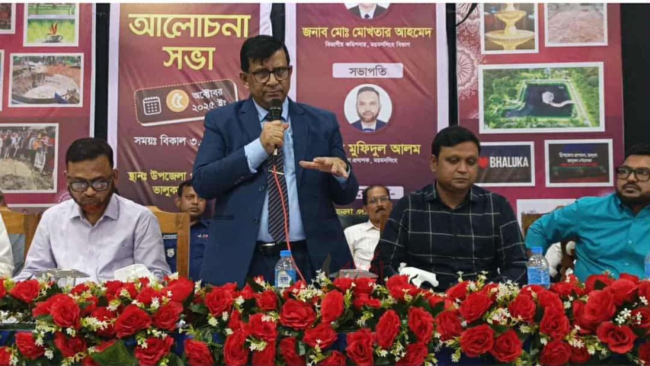 রবিবার (৫ অক্টোবর) বিকেলে উপজেলা পরিষদ মিলনায়তনে “ভালুকার সামগ্রিক উন্নয়নে করণীয়” শীর্ষক আলোচনা সভা অনুষ্ঠিত হয়। এতে প্রধান অতিথি হিসেবে উপস্থিত ছিলেন ময়মনসিংহ বিভাগের বিভাগীয় কমিশনার মোঃ মোখতার আহমেদ। সভায় সভাপতিত্ব করেন জেলা প্রশাসক মুহিদুল আলম এবং সঞ্চালনা করেন উপজেলা নির্বাহী কর্মকর্তা হাসান আবদুল্লাহ আল মাহমুদ।